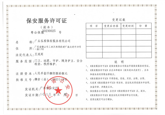 保安服務(wù)許可證副本